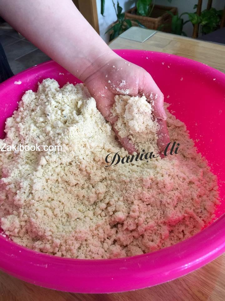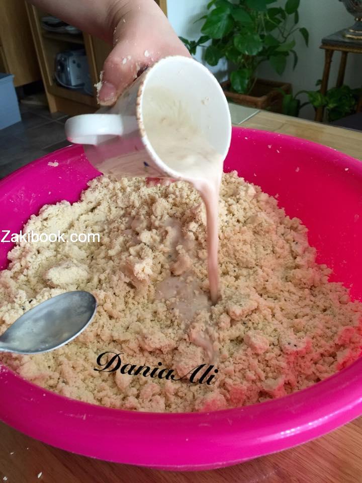 ويعجن جيداً مع القليل من الهيل والدارسين والجوز حسب الرغبة