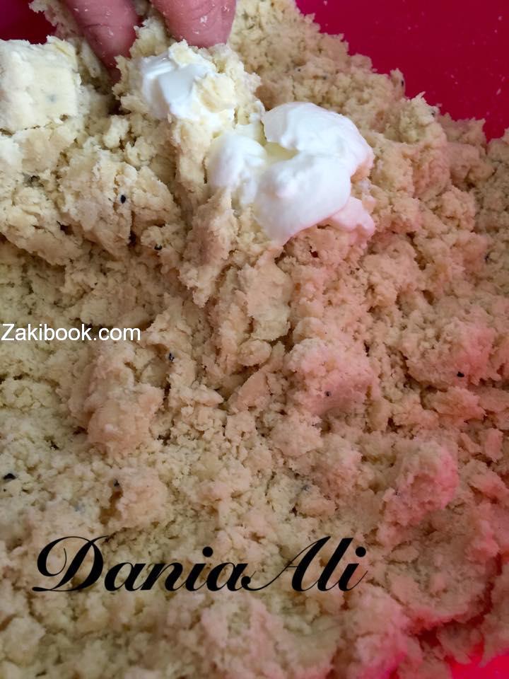 – واضيفي الدهن بالتناوب مع الماء حاولي إبقاء ربع كوب من الزبدة للأخير يعني تعجنين بيه العجينة, وأضيفي اللبن (زبادي) واكملي عجن.