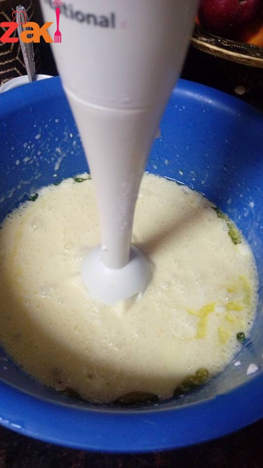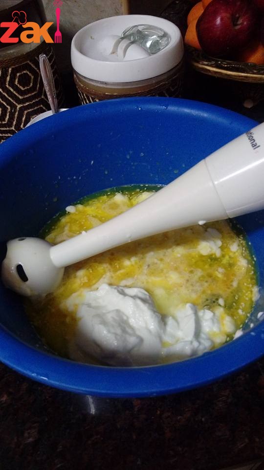 وبعد الانتهاء من الخفق اضيفي المكونات للخلطة باستثناء جبنة الموزريلا