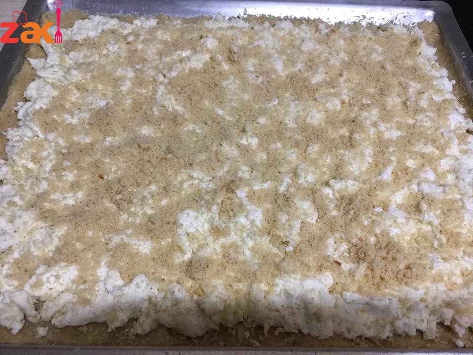 بعد ماتفردي الفرك التوست ابدائي بلضغط على كل الصينية متل مابتعملي الكبة بصينية الطبقة الأولى
