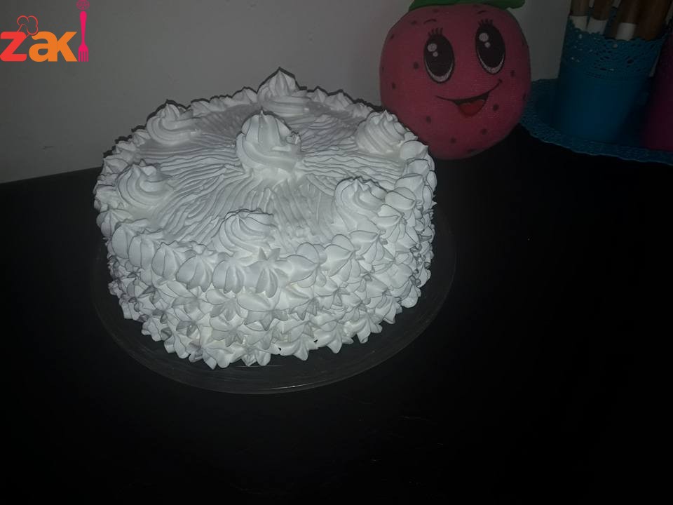 اخر مرحلة بعبي كيس الحلواني كريمه وبحط الكريمه صف من تحت وبرجع ببلش بتاني صف فوفه لوصل للحراف والوجه سويتو متعرج بالشوكه لان الكريمه خلصت ماكفتني خجلتني