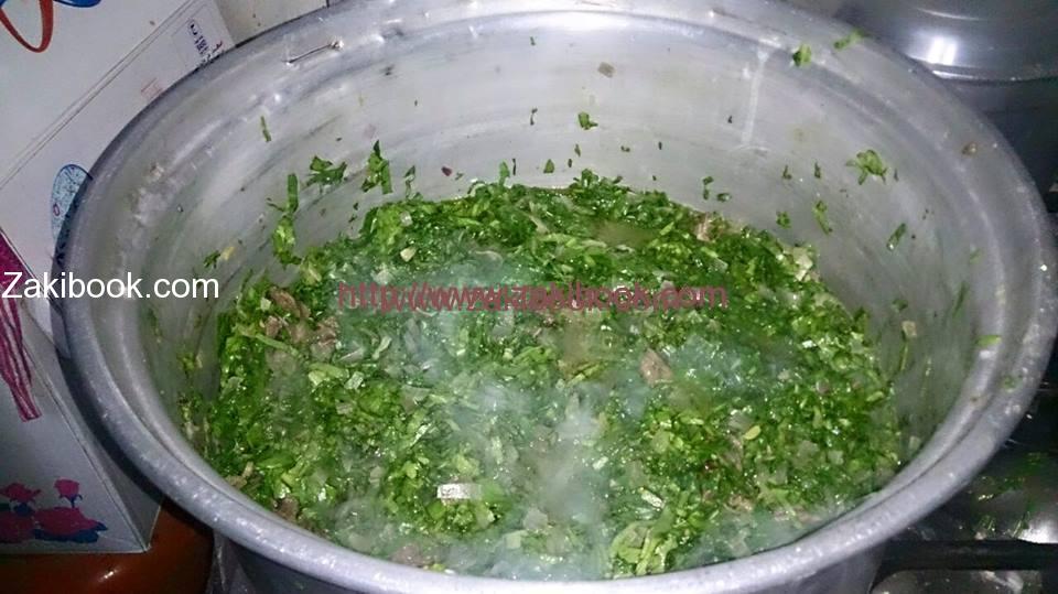 – يفرم البصل ويدبل على النار ثم تضاف له اللحمه المسلوقه ومقطعه وتوضع عليها بهارات مشكله وملعقة كمون ويدق لها قرن فلفل اخضر وقليل من الملح وعين جراده او بذور الشبت وتحرك ثم يضاف لها السلق المفروم والمغسول المصفى حتى يدبل.