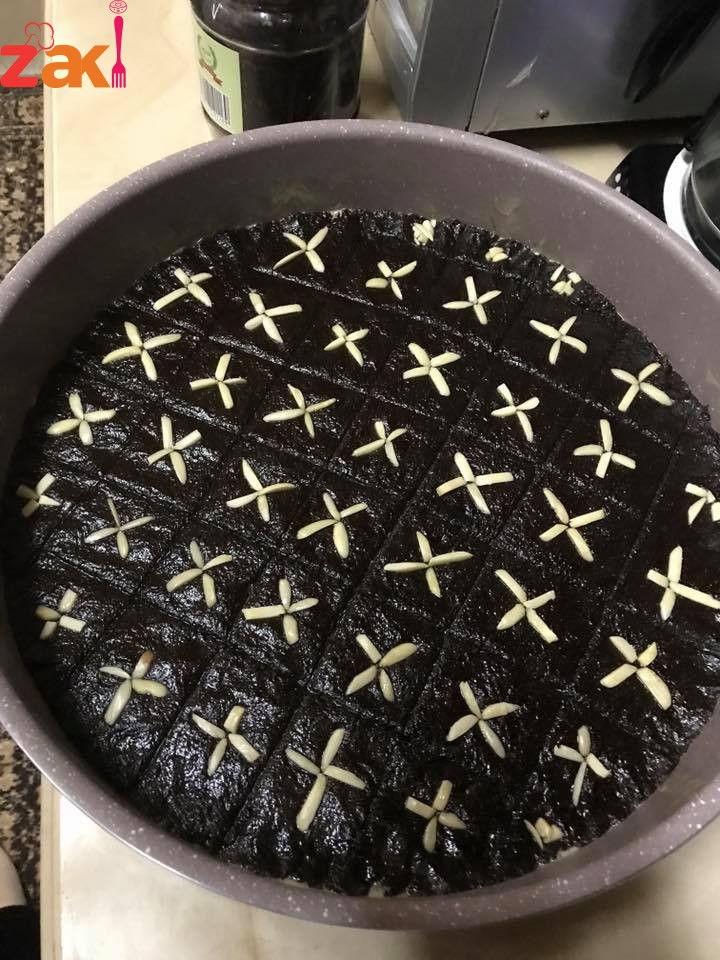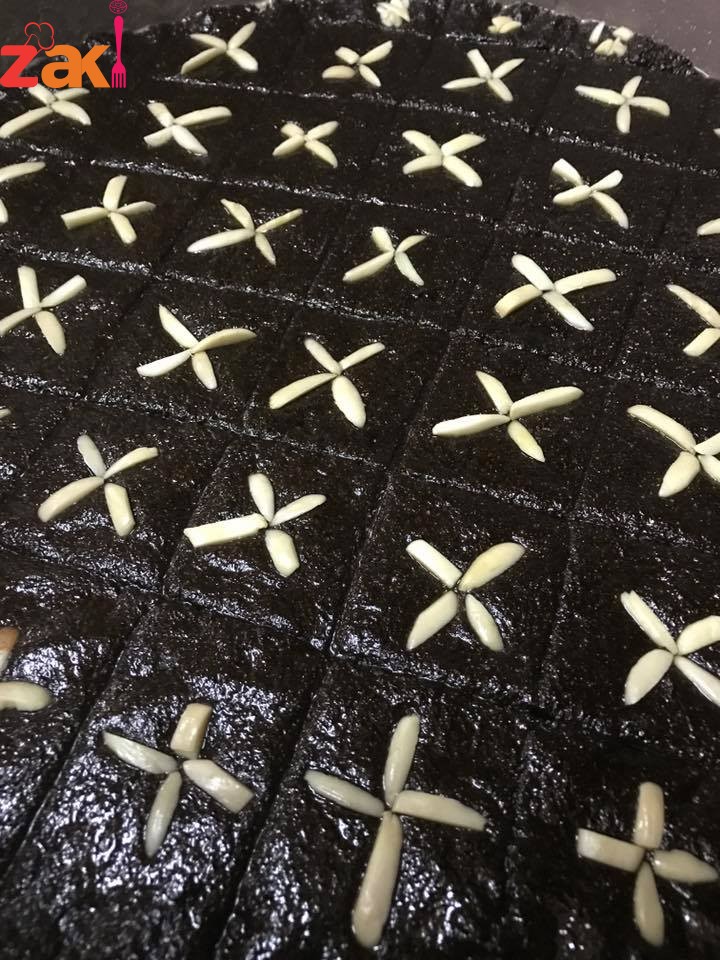 وبنقطعها بالشكل المرغوب ونزينها بشرائح اللوز بنغطيها
