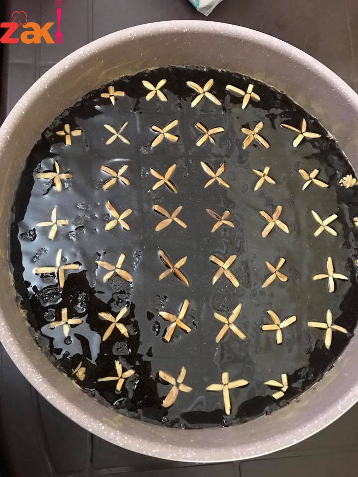 نخرجها من الفرن ونسقيها بالقطر البارد وصحتين