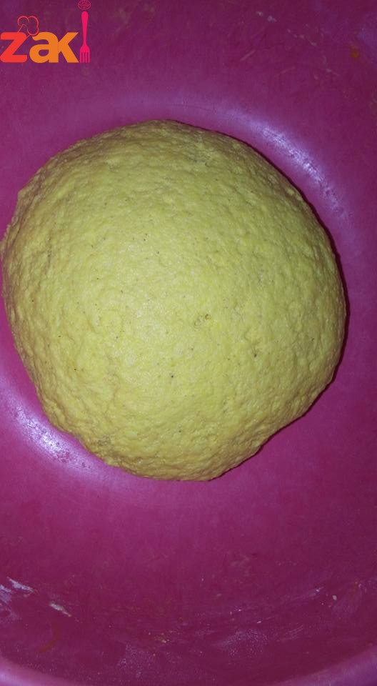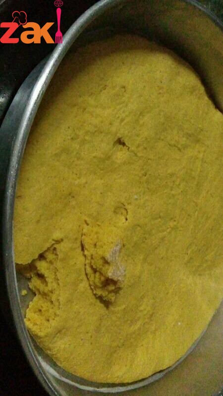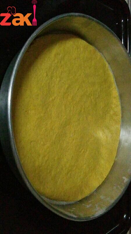 وبعدين بتفرديها بصينية مدهونة زيت وطحين