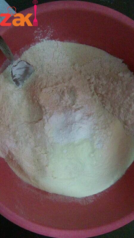 بنخلط المكونات الجافة وبعدين بنفركهم