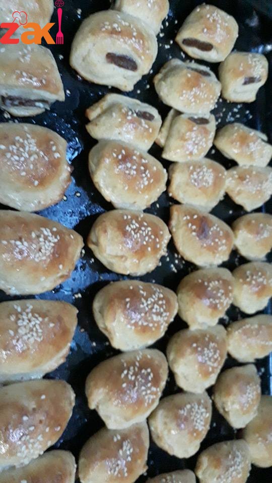 تخلط المواد الجافة ونظيف السمنه وندمجها مع الطحين جيدا وبعدها نعجنها بالماء وتترك لتختمر لمدة ساعة وبعدها نحشيها حسب الرغبة ونشكلها حسب الرغبة