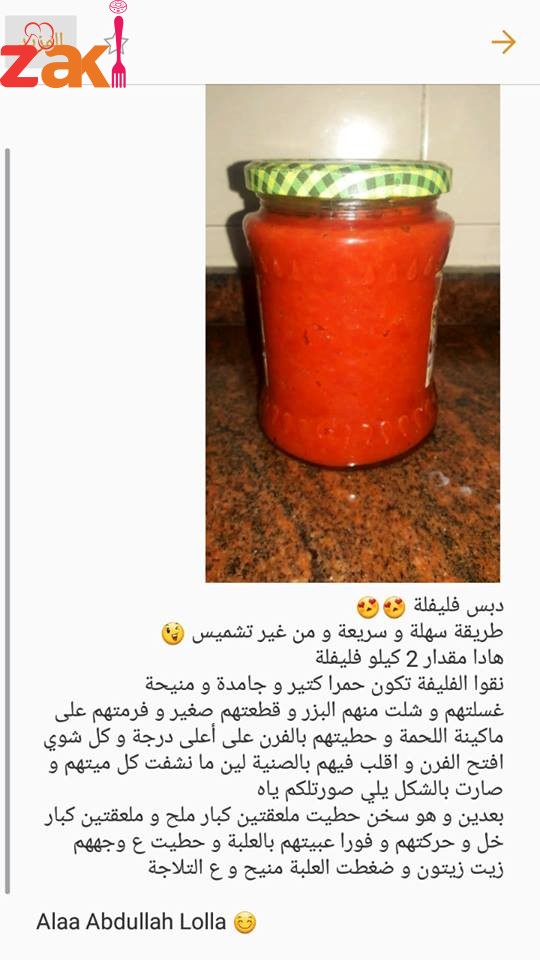 طريقة تحضير دبس الفليفلة, معكم صديقة زاكي الشيف الموهوبة Alaa Abdullah Lolla دبس فليفلة من تحت ايديا 😄😍
