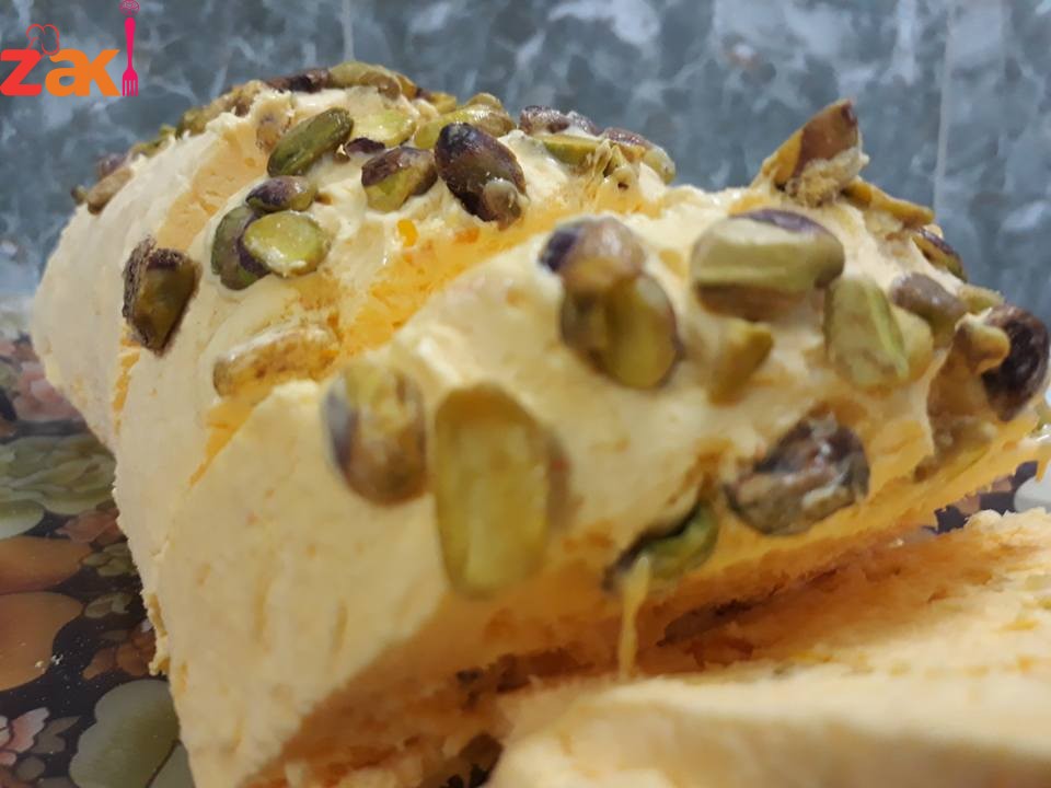وترشي فوقها برش البرتقال والفستق الحلبي وترجعيها عالفريز