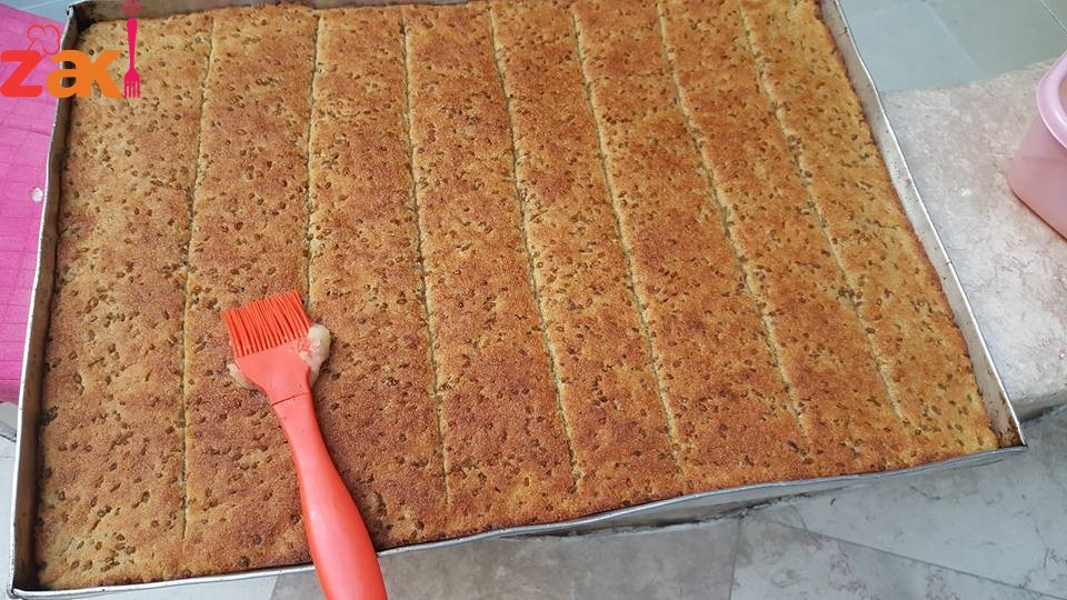 وبنمدها بصنية وينقطعها وعلى الفرن بحرارة وسط وبس تستوي بندهن وجها سمنة وبنضيف القطر