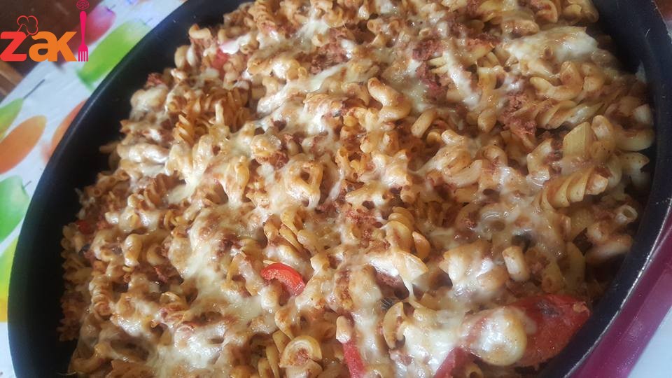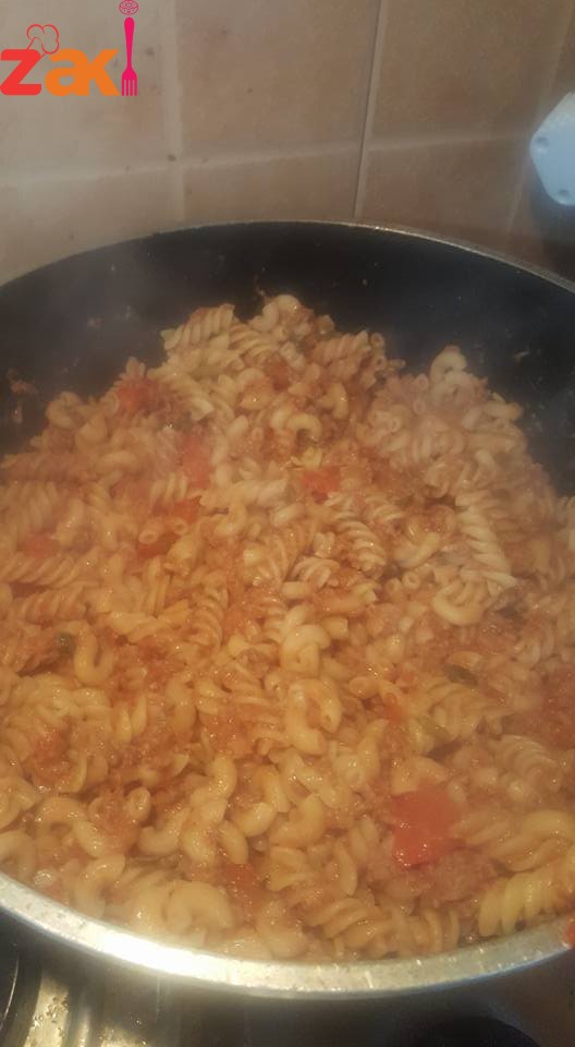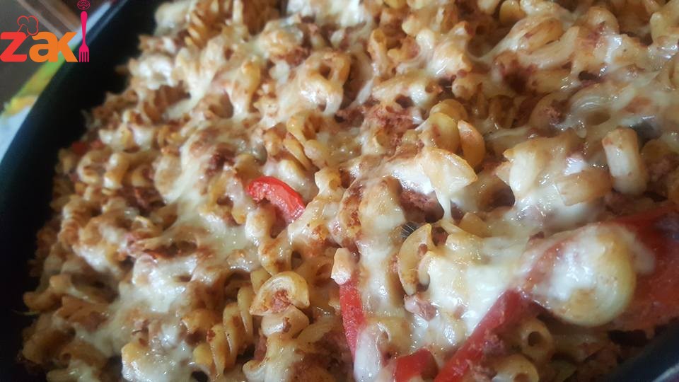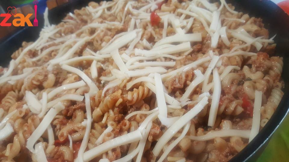 ونحركها جيدا واخيرا نضع فوقهما المعكرونه المسلوقه ونحركها جيداُ ونتركها لمدة 3 دقائق على النار وبعد ذلك نضعها بصينيه ونضع فوقها الجبنه ونضعها بالفرن وبالهناء والشفاء كتير زاكيه جربوها
