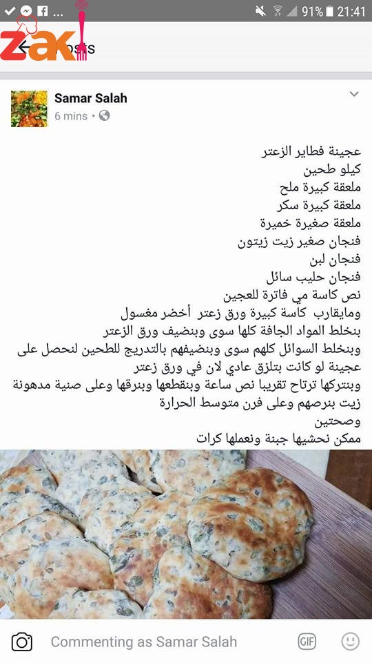 طريقة عمل الخبز بالزعتر ,مع صديقة زاااااااااااكي الشيف الرائعة Maryam ALhaj,من أشهى وألز المعجنات الشهية التي تمتاز بالطعم الرفيع المذاق الأروع ,تابعونا حتى نعطيكم الطريقة كاملةً.