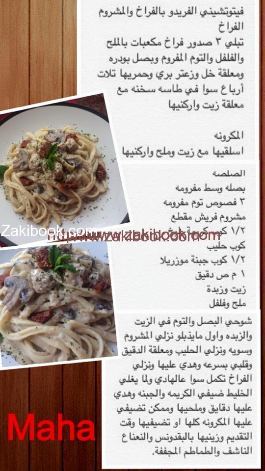 تشكين ترياكي  فيتوتشيني الفريدو بالفراخ والمشروم  كب بيتزا التورتيلا