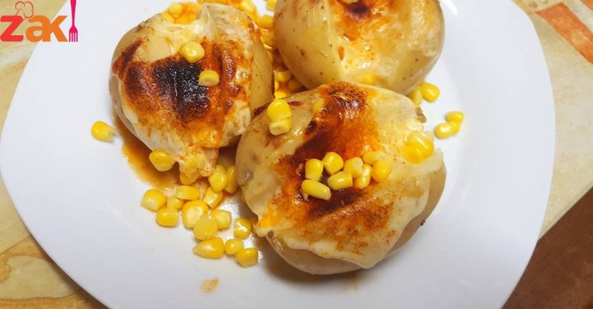وبعدها حطيتها على ورق زبدة وفتحت الحبات وحطيت مكعب زبدة وبرش جبنة ورشيت عليهم بهار البطاطا هو عبارة عن ثوم بودرة وببريكا وحطيتهم بلفرن يتحمرو وطبعا ضفنا ذرة للتزيين