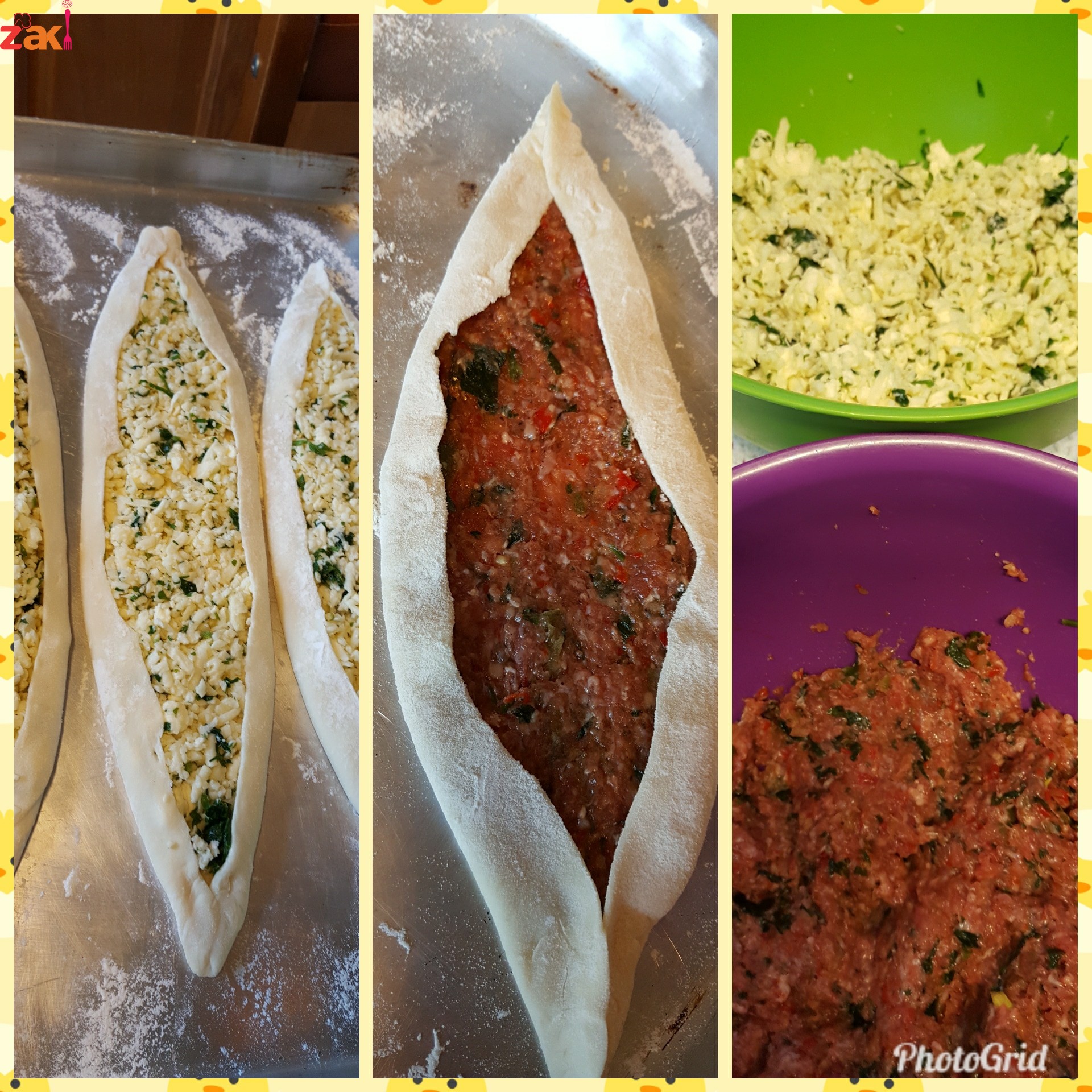 وبتركهن يرتاحو نصف ساعة لاحصل على عجينة مطاط بحشي البيدأ باللحمة والجبنة
