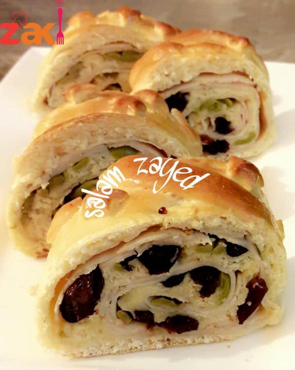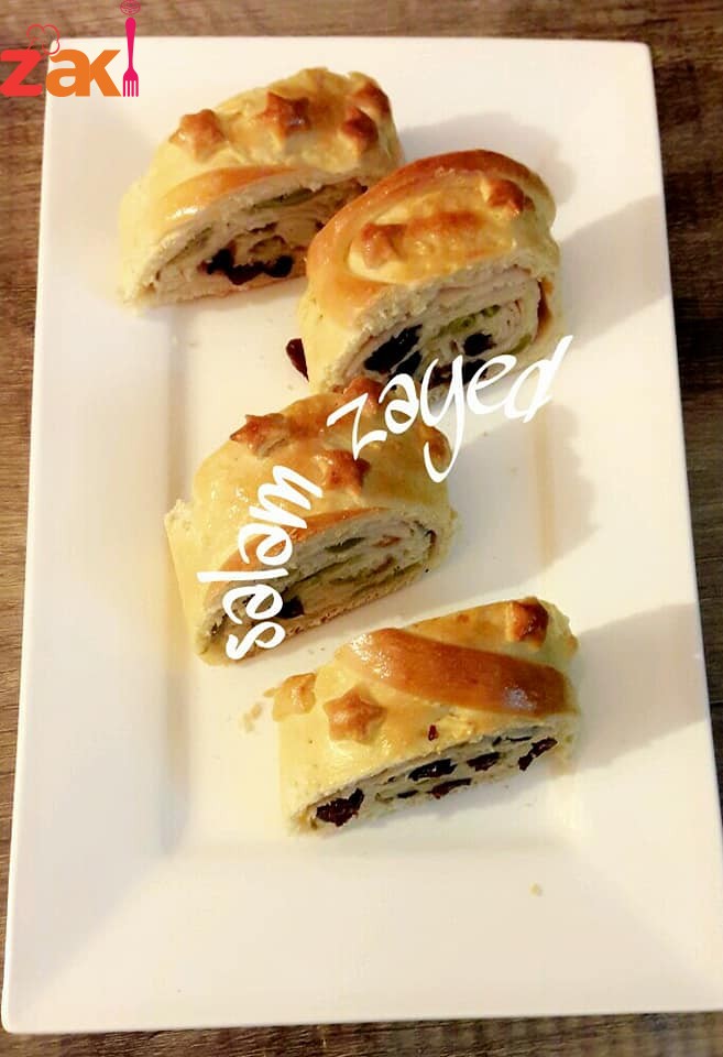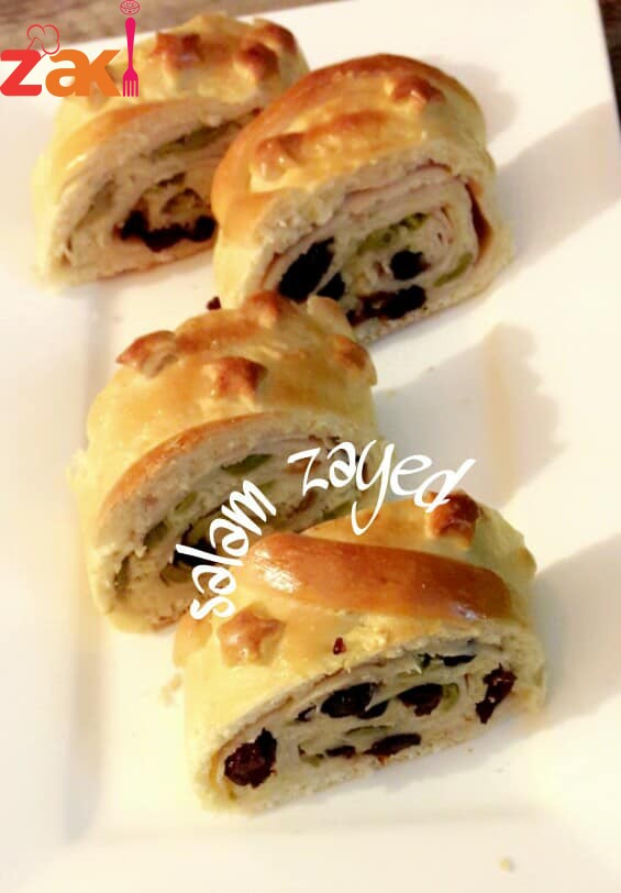 زيتون اخضر مقطع.. زبيب اسود.. لانشون ديك رومي مدخن رفيعة..