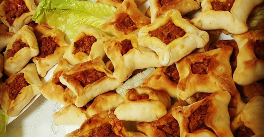 نفرد قطعة العجينة ووضع الحشوة وتشكيل كما فالصورة ام مثلثات او على شكل رغيف كبير