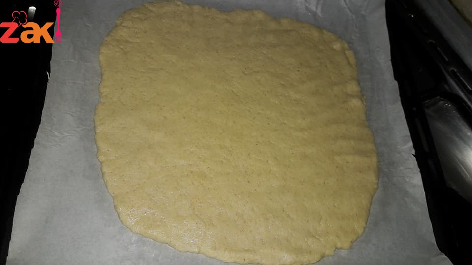 وبعدها بحط جزء ع الفرك بعدها بيل ايدي بشوية مية وبلمسها لتكون بنفس المستوى بعدين عالفرن ع درجة حرارة 180 وقبل ما احدطها بكون حاطة جزء بسيط من الفرك وبس بصينية نفس حجم الثانية