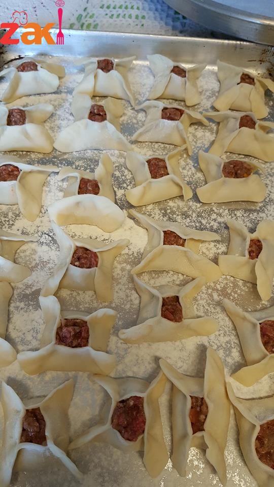 نفوم بعجن العجينة ونتركها تتضاعف ثم اقم بتحضير الحشوة وقيتين لحمة ناعمة