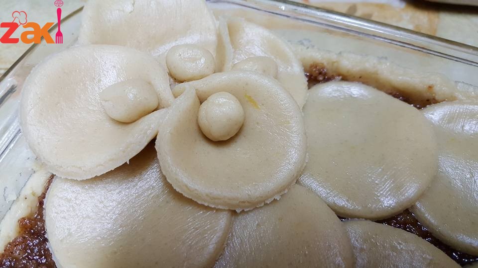 بنحط العجينة على نايلون وبنغطيها بطبقة تانية من النايلون وبنرقها
