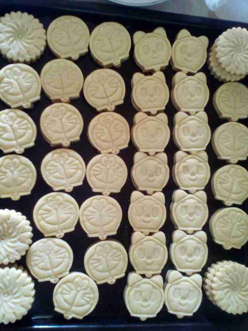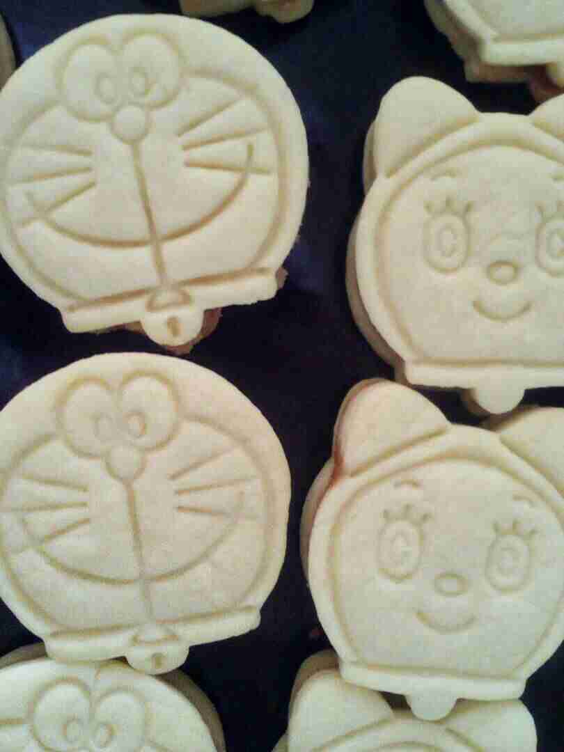 على طاولة عمل مرشوشة بالطحين نبسط العجين حوالي 5ملم ثم نقطع حبات السابلي (قطاعة دورايمون متوفرة بالأسواق وفي غيرو مثل هيلوكيتي ويمكن تشكلي السابلي قلب 💓 أو نجمة 🌟 أو مثلث أو دوائر صغار باستعمال كوب الشاي المهم أنو نفرح الأطفال)