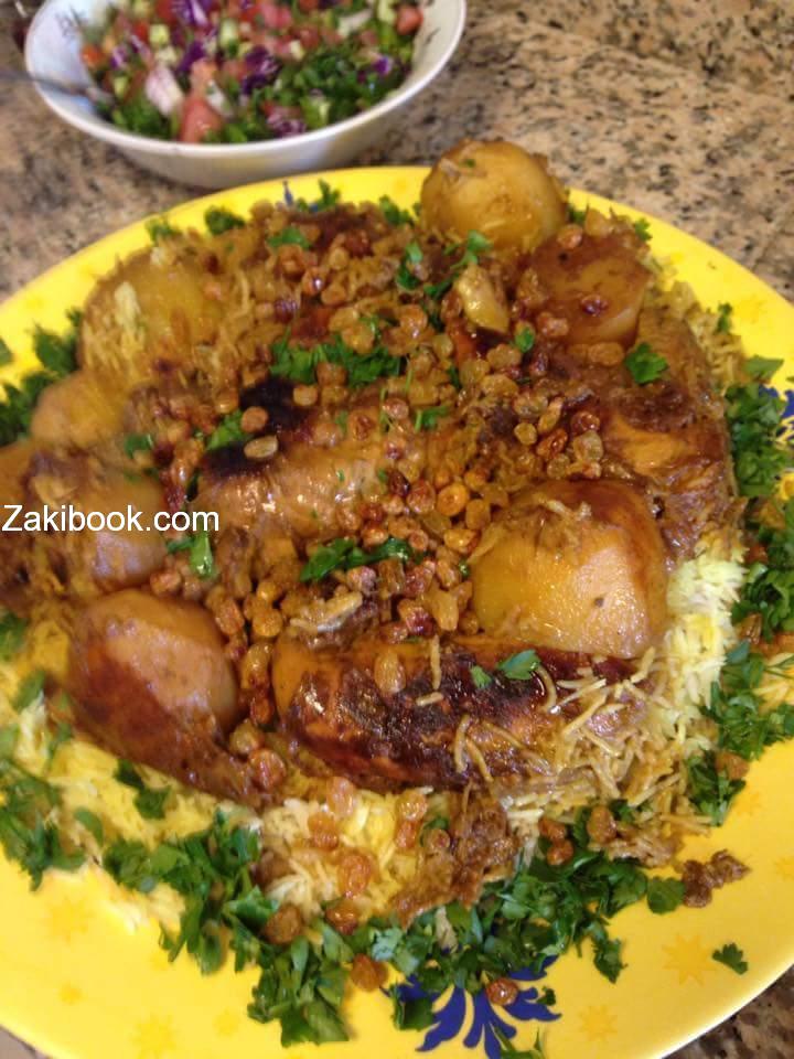 – بنكون الرز طبخناه بطنجره عجنب من غير نقع بسمتي مع ملح وملعقه زيت, لما يتشرب المي بنحطو عالدجاج والبطاطا وبنحط فحمه وعليها زيت زيتون وبالفرن ربع ساعه حتى يتشرب المرقه وتنشف وبتنقلب, وصحتين وهنا.