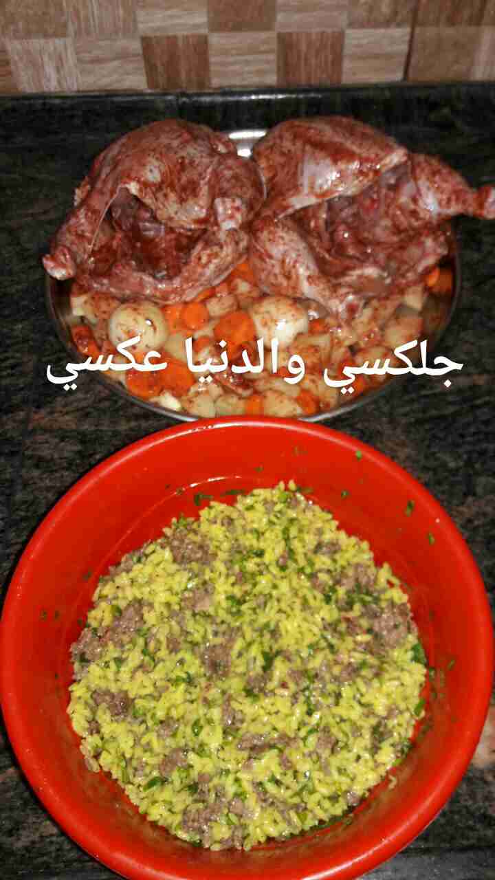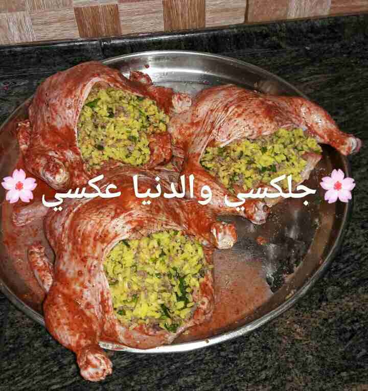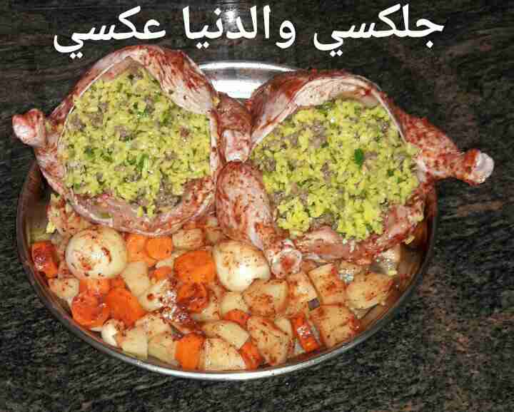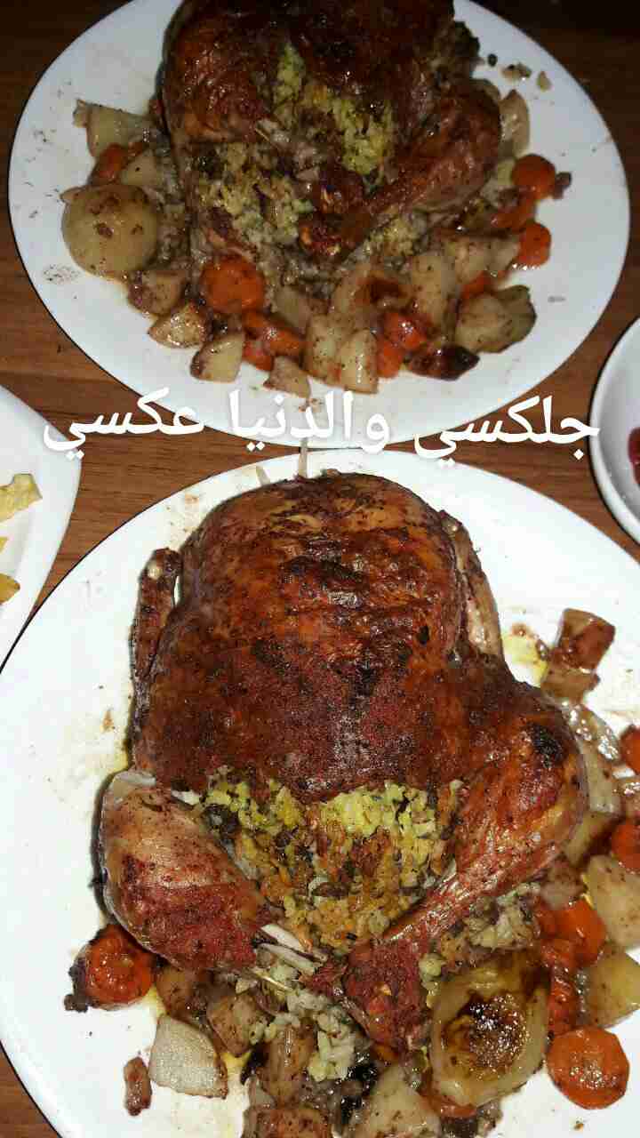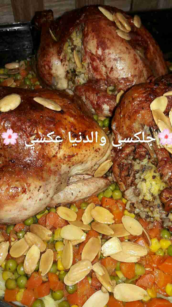 4-ازا حابه تحشي الدجاج بالارز بدك تسلقي الارز مع رشه ملح ورشه كركم خفيفه بس يقارب ع الاستواء بتصفي وبتغسلي من مية السلق بعدا بتحوسي لحمه مفرومه مع زيت ذره مع رشة ملح وفلفل أسود وخلي زيت عليهم بزياده شوي منشان بس ضيفي ع الارز ما يخبص وبتفرمي شويه بقدونس وشوية مكسرات محمصه ومعلقة صغيره من خلطه بهار الدجاج وبتحركيهن منيح وبتحطي سن ثوم جو الدجاجه بعدا بتعبيها من الحشوه وبتربطي الاجرين مع بعض بخيط وبس يستوين بتقصي الخيط وبتشلي وحطيورق غار جو الكيس للنكهه حسب الرغبه😉 بعدا بتحطي الدجاج بالأكياس الحراريه مع فنجان ماء وبتسكريهن جيدا وبتحطيهن بلفرن حسب فرن المتوفر عندك انا بستخدم الكهربائي بحط ع رف الشبك وبشغل الفرن ع نار واطيه من تحت مدة ساعه بعدا بشغل الي فوق وبخليهن يطبخن ع نار هاديه 😊😊