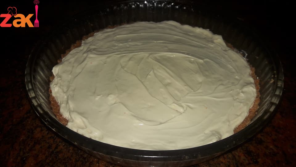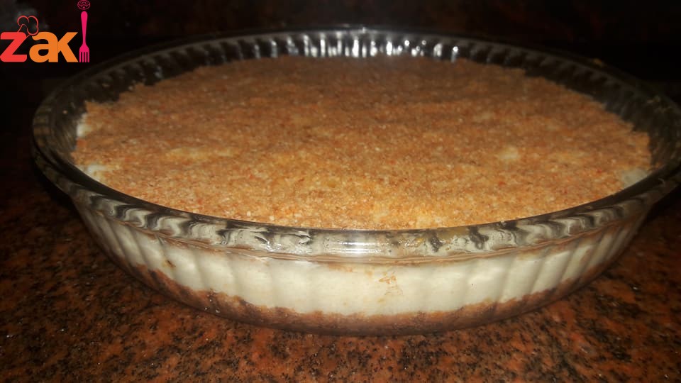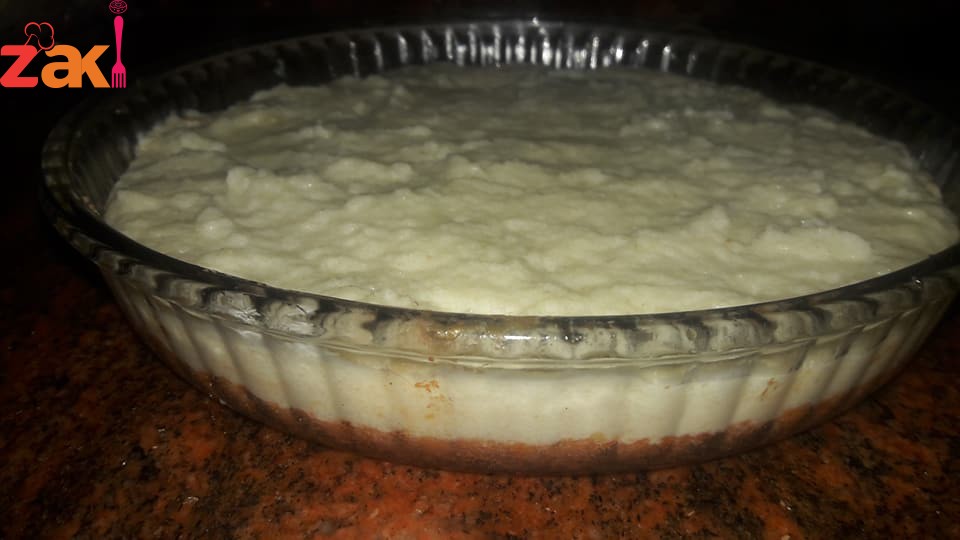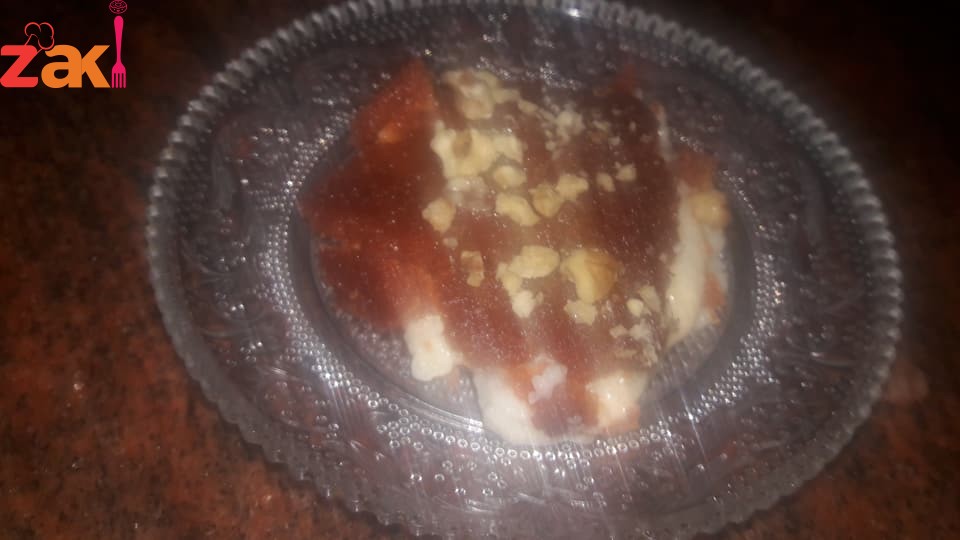 ممستك وملعقتين قشطة وبتضلك تحركي بشكل مستمر مع الخفاق اليدوي وبس تسخن وستوي طفي وحطي نوته من ميه الزهر وحركي فوراً حوطيها فوق طبقة الجبنة وبتحطي عليها الفرك يلي تركتيه وبعدها ع النار 180 اخذت نص ساعة وبعدين اعملي حوافها واقلبيها وحوطي القطر