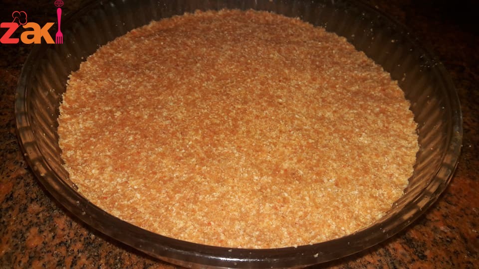 اول اشي افرمي عالخلاط أو المكسر خبز توست أو فينو أو أي نوع متوفر عندك ونخليه والي بضل بالمنخل خشن ارجعي اطحنيه ونخليه (وبدي اعطيكم السر بانه الاخر نكهتها تكون مثل الكنافة الاصلية تماماً هو انه كمان تطحني مع التوست كم حبة بسكويت سادة )