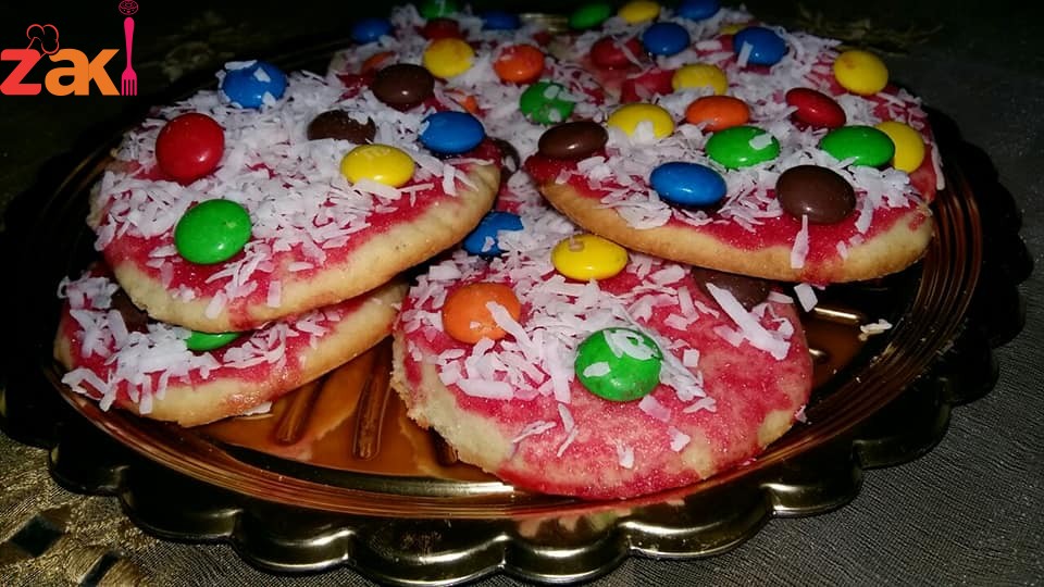 لتحضير العجينة نفرد العجينة على ورق الزبدة ثم نفرد العجينة بالمرق ونقطعة بالقطاعة لدوائر صغيرة ونعمل هكذا حتى ننتهي من كل الكمية ثم نضعهم في صينية فرن غير لاصقة وندخلهم على فرن محمى مسبقا على درجة حرارة ١٨٠ مئوية لمدة ١٢ دقيقة او ربع ساعة حتى يحمر قاع البسكوت وهذا يرجع حسب درجة حرارة الفرن ونتركهم يبرد ثم نضع عليهم الأيسنغ ونزينهم بالشكولاته الملونة وجوز الهند ونقدمهم مع الشاي او القهوة (وصحتين وعافية )