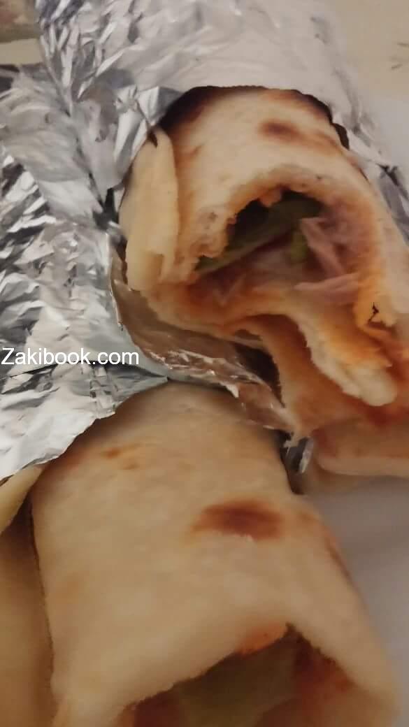 انا حطيت هريسه حاره, بندوره شرائح, خس, جبنه مثلثات, تونه, مايونييز, احشيها ولفيها, وصحتين وألف عافية.