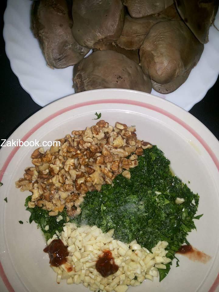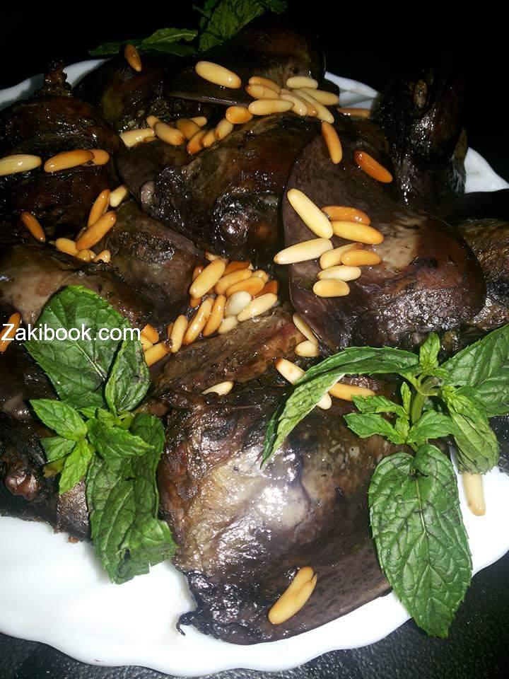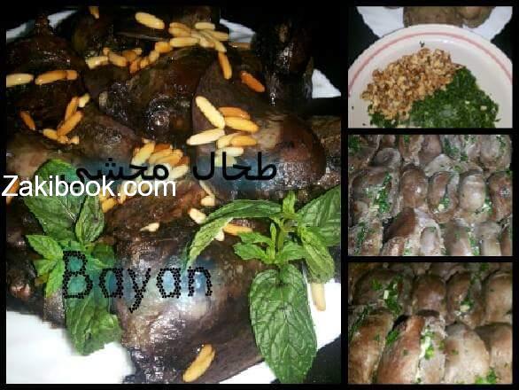 – تخلط مواد الحشوة ويحشى الطحال ويرص بصينية مدهونة بزيت الزيتون يغطى بالقصدير ويدخل الفرن بحرارة متوسطة حتى النضج,  صحتين وعافية.