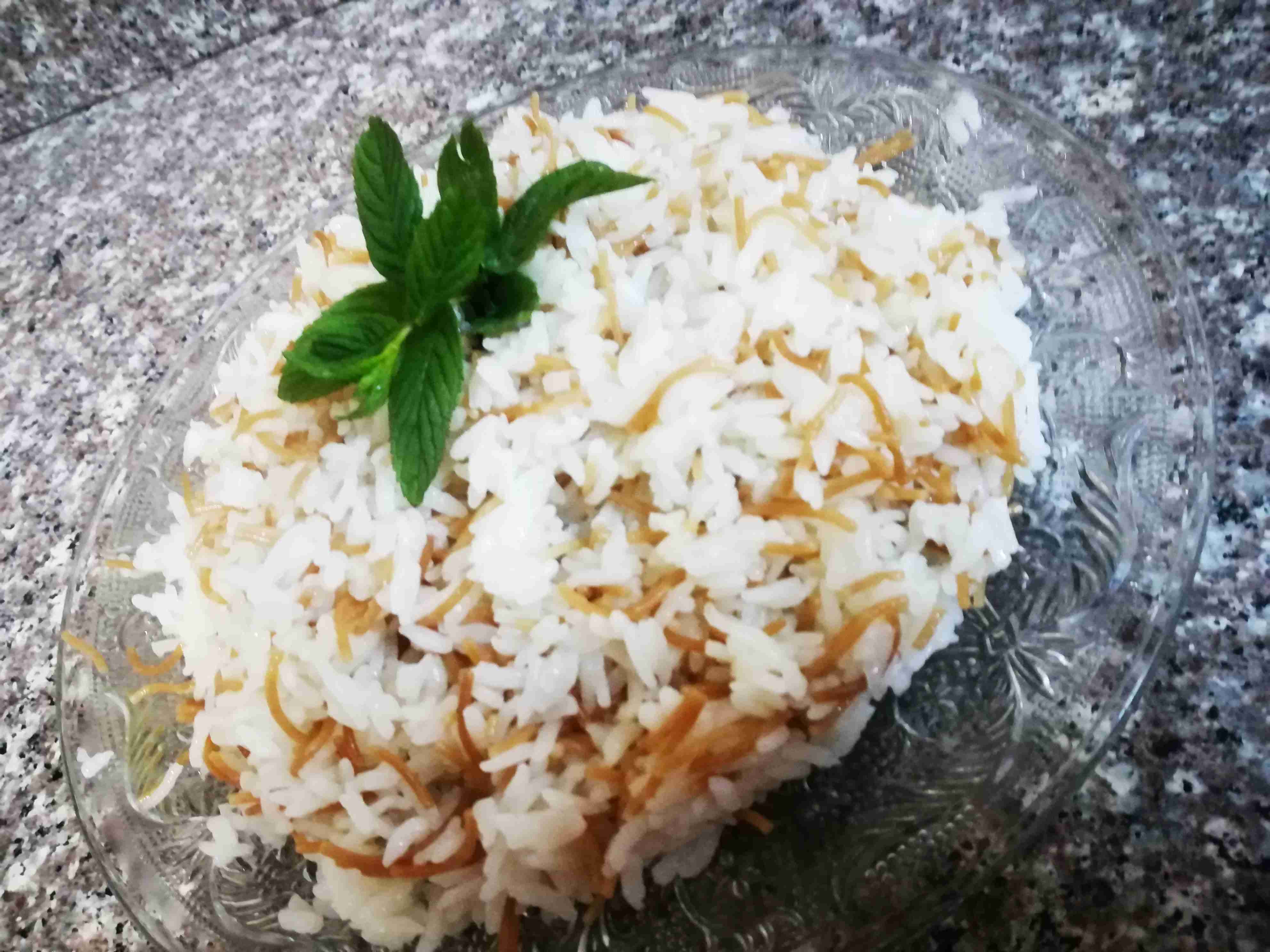نحمص الشعرية بشوية زيت بعدين بنضع الأرز المنقوع نص ساعه ونضع الملح حسب الرغبة ونغمرة بالمي لحد ما يستوي