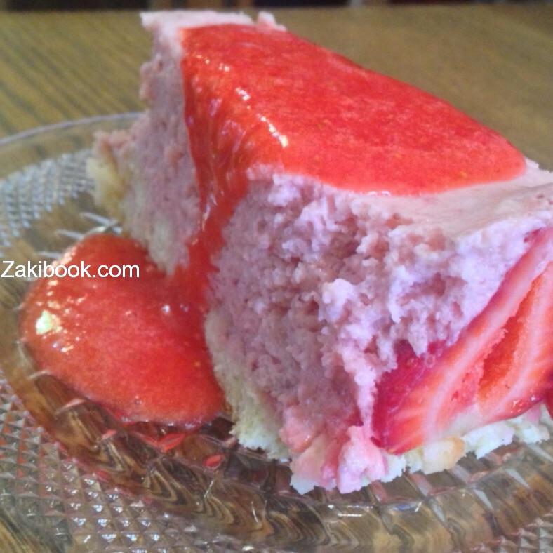 * او اضافه ملعقتين جلو ساده بعد اذابتها بماء فاتر فوق الفراوله المخفوقه ثم صبها على الكيك بعد تبريده 8 ساعات واعادته مره اخر حتى يجمد.