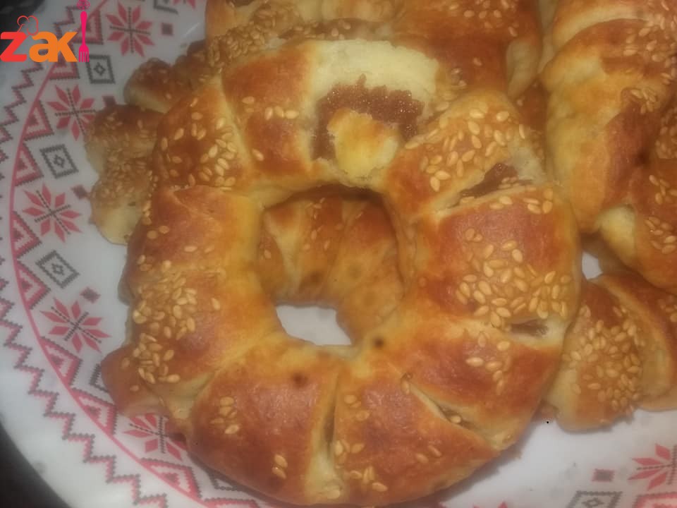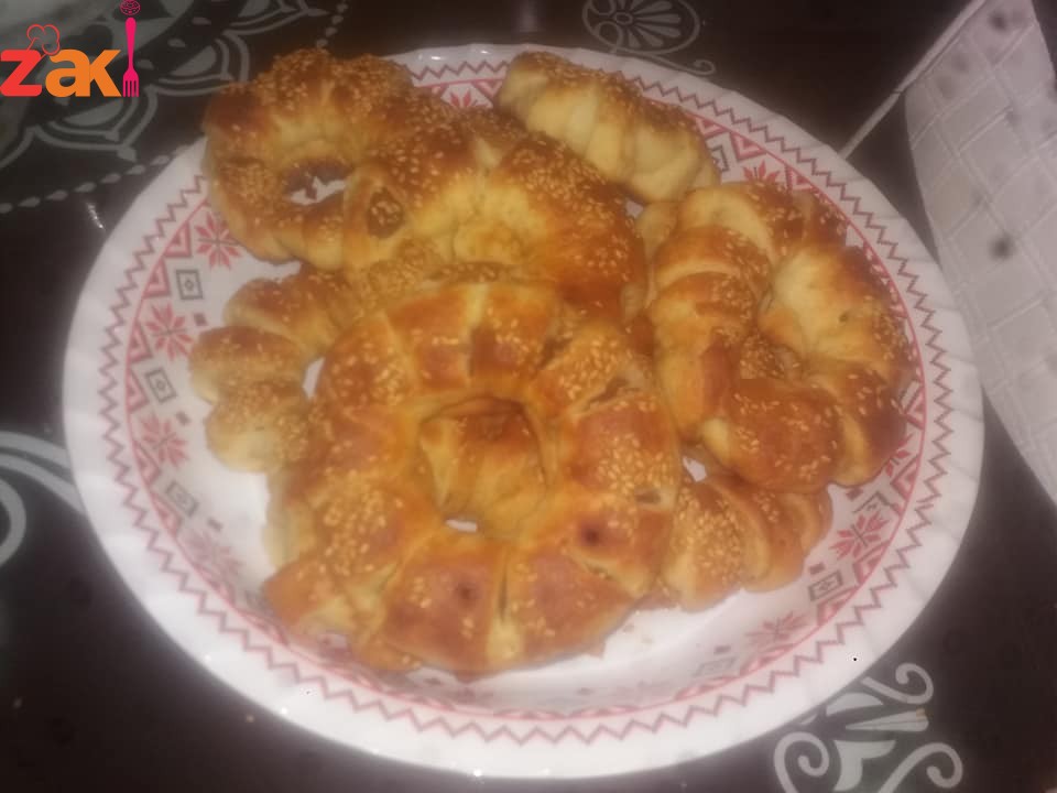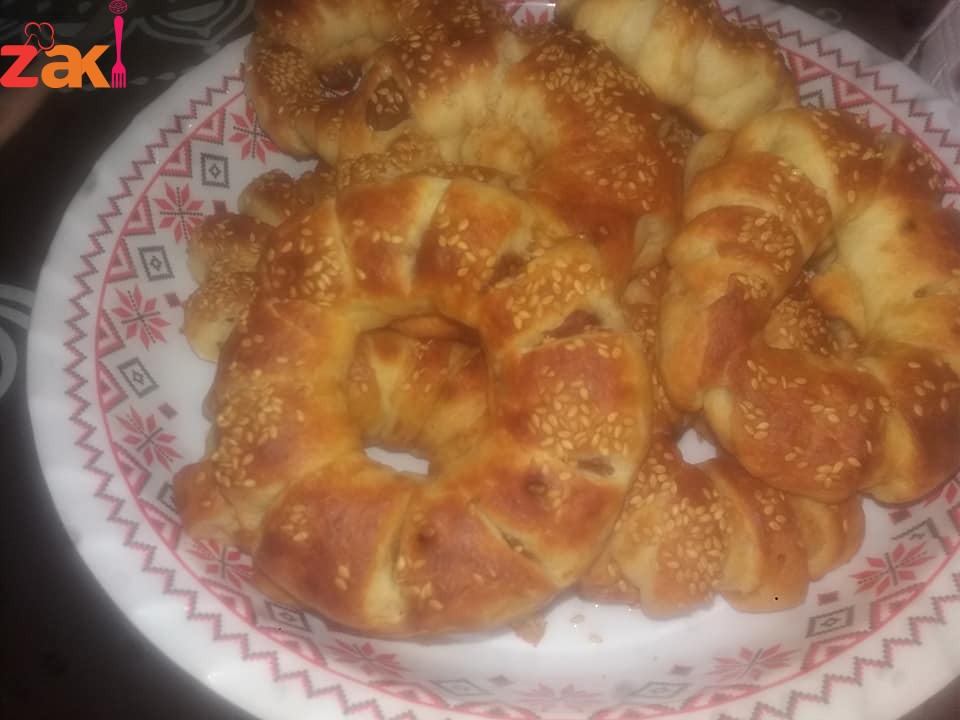 بنخلط الزبدة والبيضة مع بعض وبنضيف النواشف وبعدين المي ابتقدري بدل الماء حليب سائل وبنعجنهن امليه لتحسي انها العجينة صارة ملسة وبعدين ابتركها ساعة ترتاح وبعدين بنقطعها وبنعجن التمر بمعلقتين زبدة وبنحشيها وبعملها على شكل رول ثم دائرة وبطرف السكين بشكلها وبعدين بخليها ترتاح كمان نص ساعة وقبل ما تخبزيها حلي نسكفيه ودهني الوجه وحطي سمسم