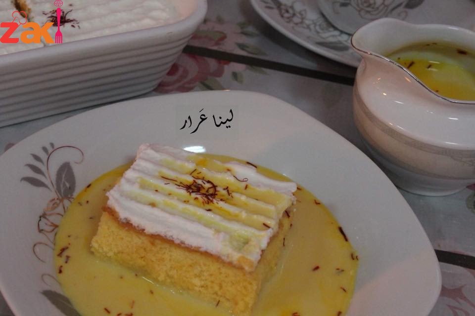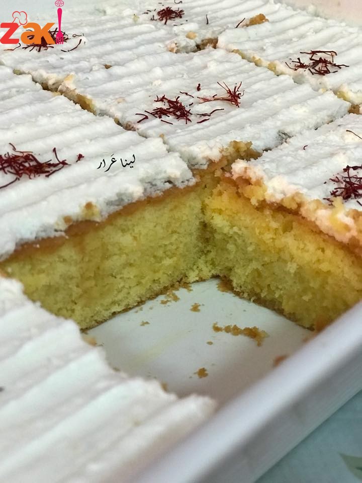 كيكة الحليب بالزعفران, معكم صديقة زاكي الشيف الموهوبة لينا عرار, اليوم حبيت أقدم لحضراتكم كيكة الحليب بالزعفران أو ببديل الزعفران هشاشة وخفة شئ لا يوصف والصورة تتلكم لأنه لساني يعجز عن التعبير عن فخامة هذه الكيكة, جربوا كيكة الزعفران على طريقتي, واكتبوا رأيكم في التعليقات لتشجعي.
