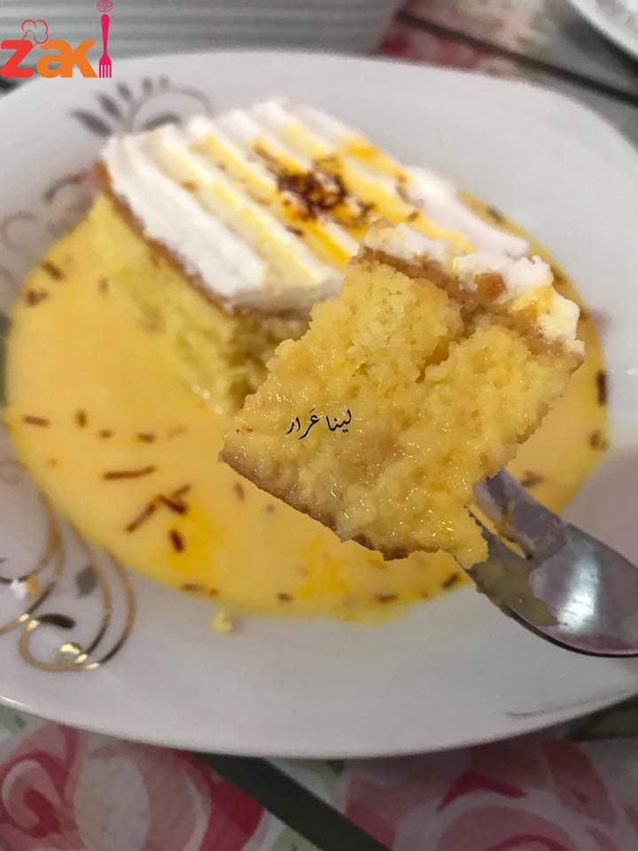 كيكة الحليب بالزعفران, معكم صديقة زاكي الشيف الموهوبة لينا عرار, اليوم حبيت أقدم لحضراتكم كيكة الحليب بالزعفران أو ببديل الزعفران هشاشة وخفة شئ لا يوصف والصورة تتلكم لأنه لساني يعجز عن التعبير عن فخامة هذه الكيكة, جربوا كيكة الزعفران على طريقتي, واكتبوا رأيكم في التعليقات لتشجعي.