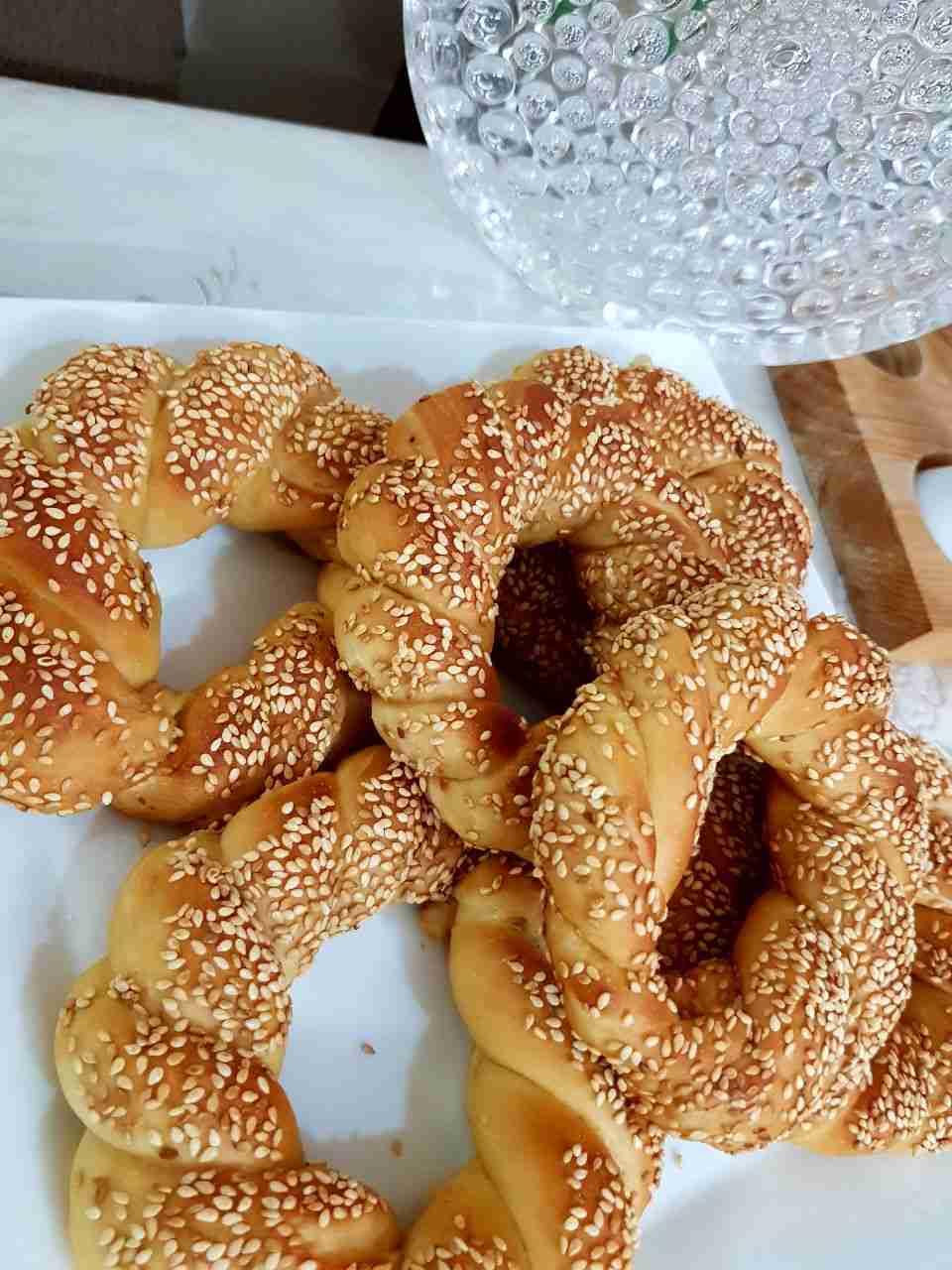 ثم نغمسها بدبس مخفف بالماء ونغمسها بالسمسم ونتركها ترتاخ ربع ساعة وادخلها الفرن من تحت ثم من فوق ما نطول الفترة لانها تستوي بسرعة تحتاج مراقبة وتقدم مع الشاي بألف عافية