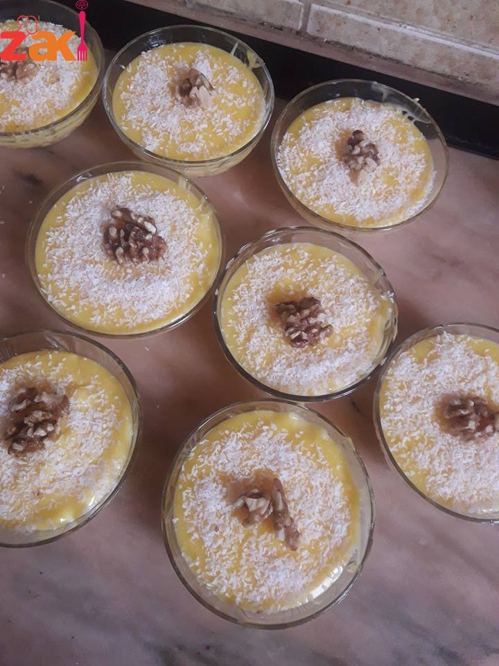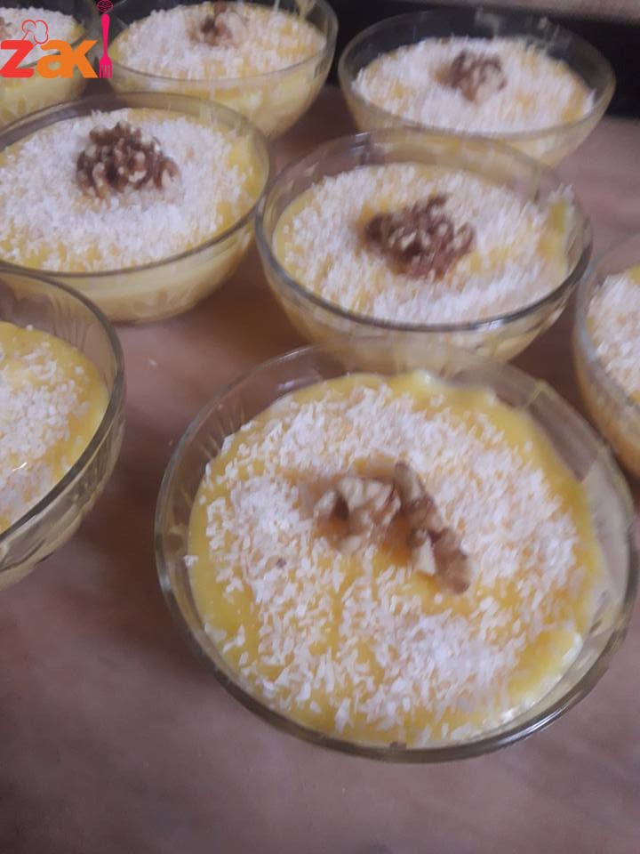 نحضر حليب بؤدره في طنجره صغيره …..نصفها ماء ونضع الحليب البودره…….ونحركه حتى تذؤب تماما…..كميه كبيرمن الحليب……..سكر قدر كوب……..وعلا النار حتى يغلي……..اثناء ذللك…….نكضر الكسترد سته……..اوسبعه ملاعق……نذؤبها في الماء البارد ونحركها……لانها ترسي في القاع………..ونحرك المزيج ب اليد اليمنى……….واليد اليسرى…..تضع الكسترد علا الحليب………مع الاستمرار في التحريك …..حتى لا تلصق…….ما تؤخد شى بسرعه تجمد………وتنزل من علا النار………..واذا اراد انيضيف ماء الؤرد قليل……..ويحرك ويصب في صحون صغيره…..وتزين حسب الرغبه………وصحه وعافيه