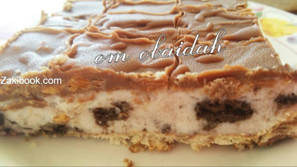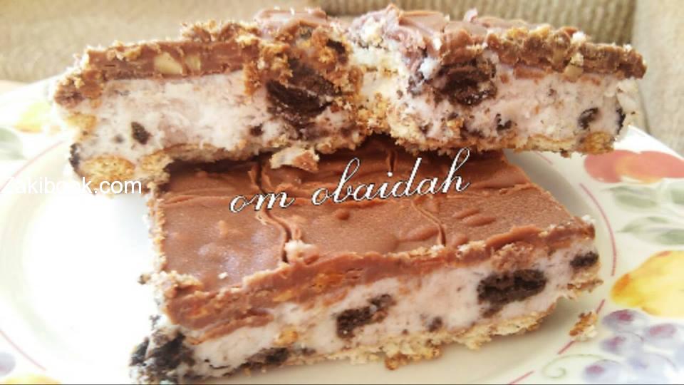 – وبعدين بنفتت الاوريو وبحطو على الخليط, نضعهم بالفريزر ساعه.