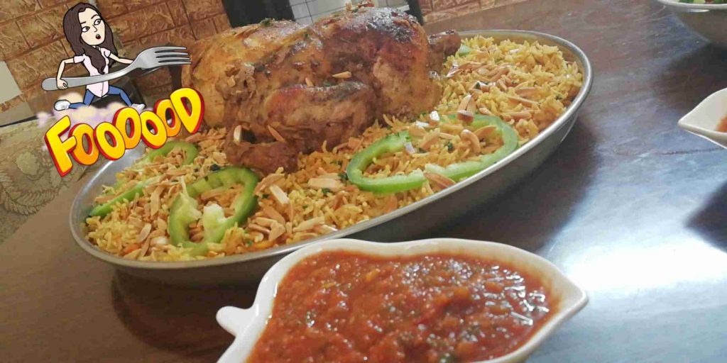 بالنسبة للرز بتنقعي الرز ب مي فاترة ” رز الكبسة” بعدها تبلته ببهارات كبسة وبابريكا وهيل وبصل وتومه بودرة وبهارات كزبرة وطبقتها لما استوى الدجاج فتحت الاكياس حمرته وفحمت فحمه وفحمته ل اخد طعم الفحم ونفس الشي الرز بس استوى حفرت بالنص وحطيت فنجان بورسلان او ادا ما عندك بورسلان قصديرة وفحمته وخليته مغطى خمس دقائق ل اخد طعم الفحم وصحه وهنا