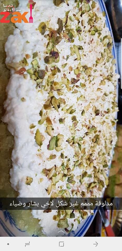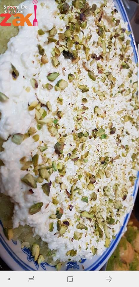 افرديها بطبق التقديم وزينيها بالقشطة .والقستق الحلبي