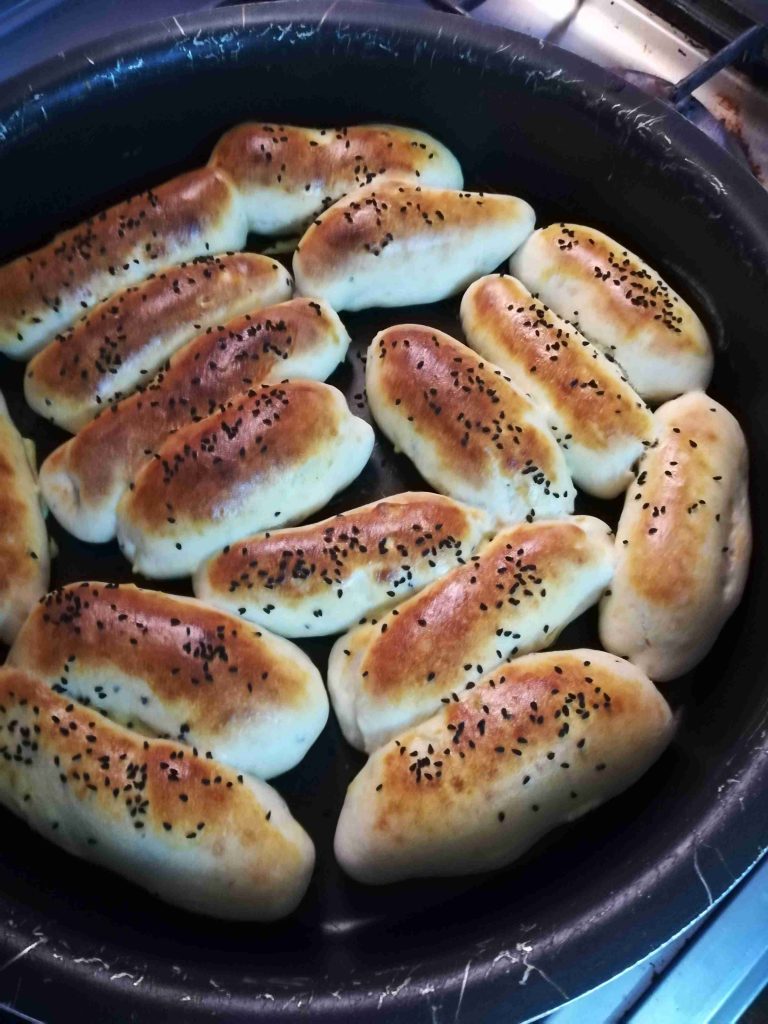 ،اول شي بنضيف النواشف بعدين زيت منخلطهم منيح وماء تدريجيا بنعجن لحتى تسير الجعينه ناعمه متل الحرير ،،والعجينه بنتركها ترتاح لمدة ساعتين لحتى تخمرر ويكبر حجمها