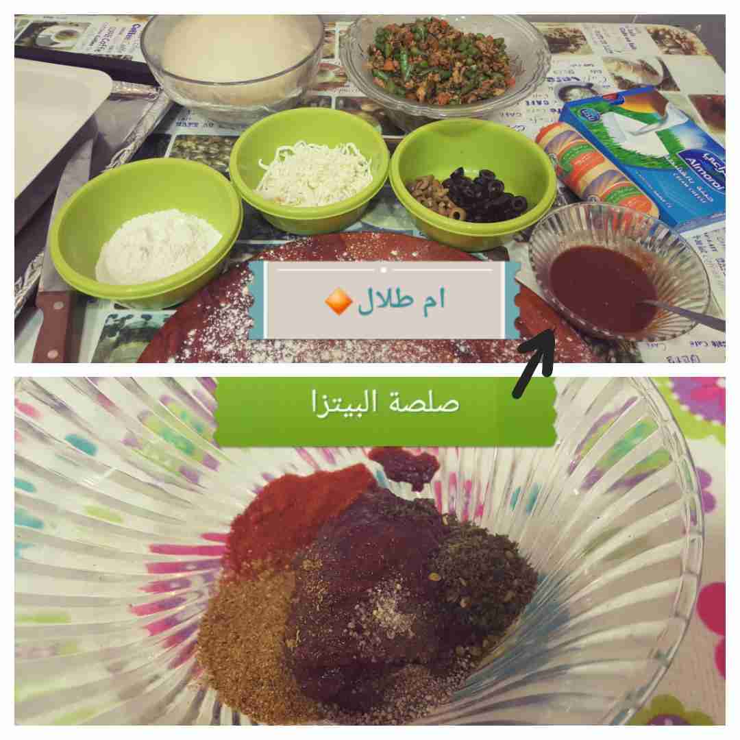وتضاف باقي مقادير البيتزا على حسب الرغبه