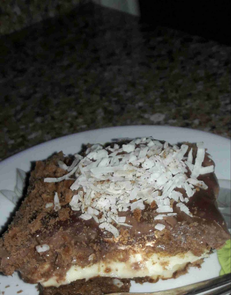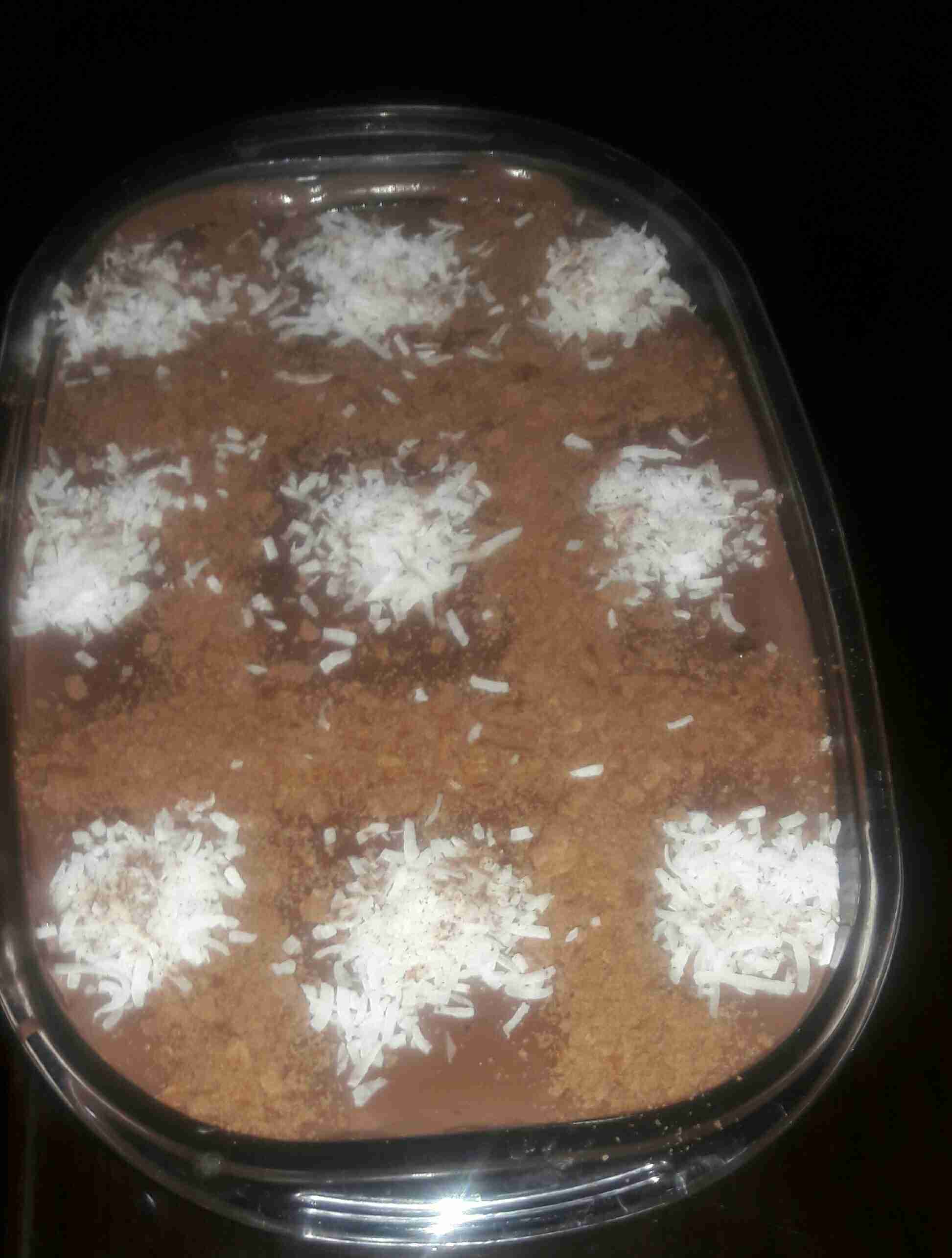 ومنزينه حسب الرغبه بس انا زينته بجوز هند و بسكوت مطحون🤗🤗 بعدين منحطه بالتلاجه ساعتين على الاقل