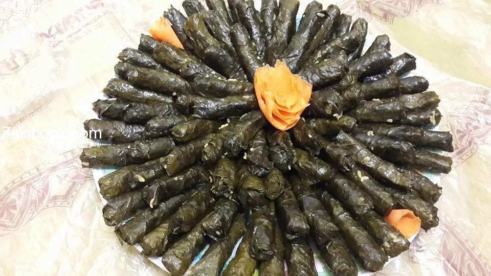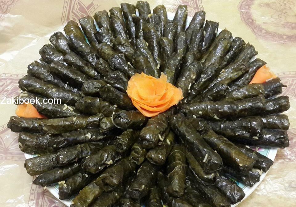 وليمون وبنخلط المكونات مع بعض .. وبنفرد ورقة العنب وبنحط ملعقه من الحشوه وبنلفها