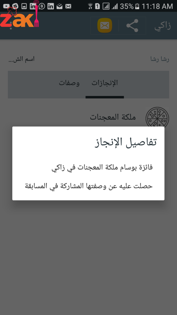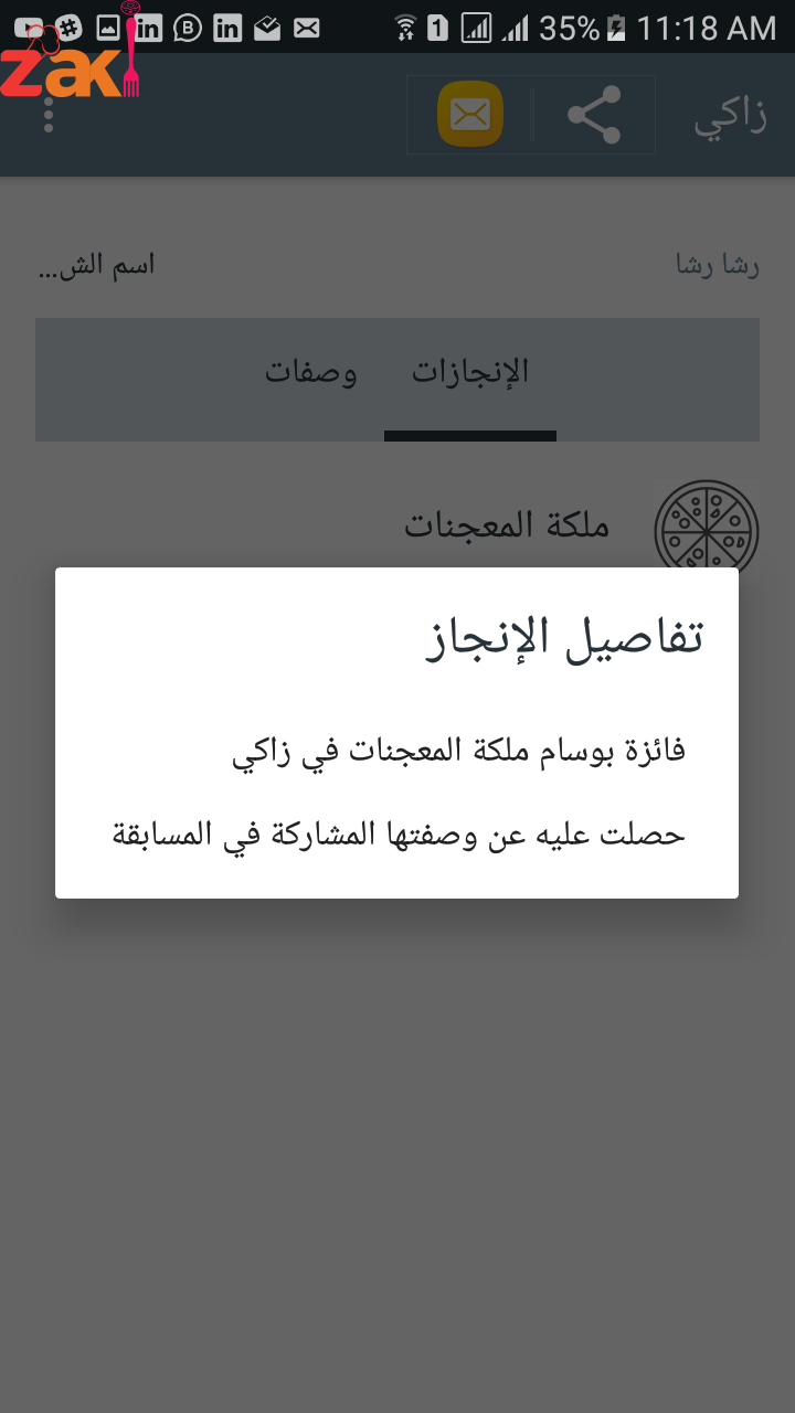 ونذكر أن كل شخص يقوم بإضافة وصفاته عبر تطبيق زاكي تقوم منصة زاكي بنشر وصفاته ليراه جميع متابعين زاكي في مختلف أرجاء العالم علق بكلمة مبروووك لتصل نتيجة المسابقة لأكبر عدد ممكن