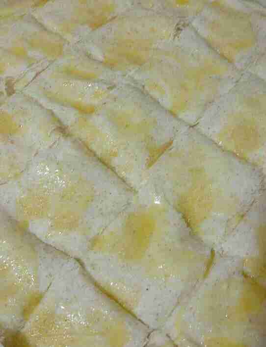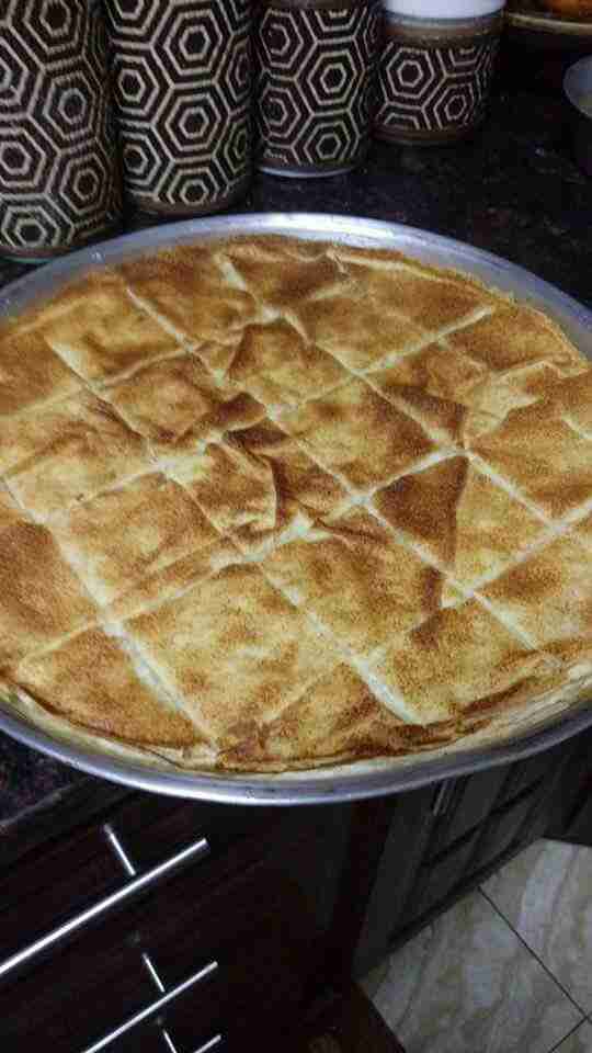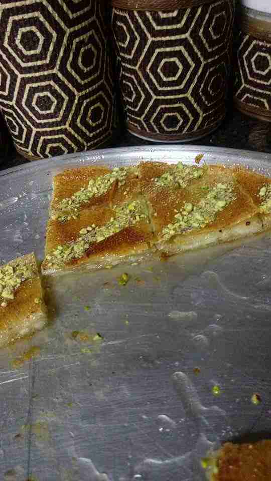 جبت صينية ودهنتها زبدة نباتية وحطيت راقتين كلاج ودهنتهم زبدة وحطيت كمان 3 راقات كلاج وبعدين فردت الجبنة على قد الصينية وبعدين حطيت كمان 5 راقات ودهنت وجههم زبدة نباتية وقطعتهم قبل ما اشويهم ..وخبزتهم بالفرن وحمرتهم وشربتهم بالقطر