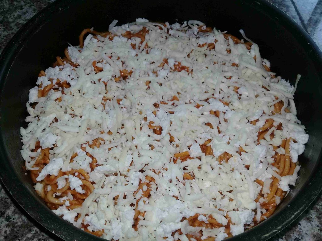 اول شي نسلق المعكرونة بالماء الموضوع عليه شوية زيت قلي ورشة ملح حتى الاستواء وبعدين بجيب صينية وبضع فيها بصل مفروم ناعم وبحط اللحمة وبقلبهم جيدآ ثم اضع المعكرونة ورب البندورة والملح والفلفل الاسمر وبقلهم مع بعض منيح وبحط عليهم تقريبآ كاسة ماء وبغطيهم لحتى يستوو ويتعقدو مع بعض بعدين بحط جبنة البيضا طبعا بعد ما ابرشها وبحط جبنة الموزاريلا المبروشة وبضعها بالفرن للتحمير وتقدم وبالهنا والعافيه يا ربي جربوها وحتدعولي طيبة كتييييير 😋 😋