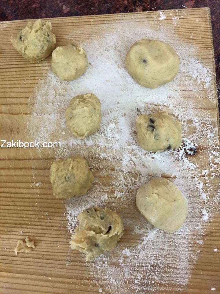– ورشي عإيدك شوي طحين واعملي كرات صغيره من الكوكيز.